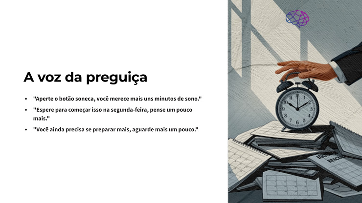 Para fortalecer, crescer, manter uma posição ou um território, temos que lidar com o mecanismo da preguiça. Esse é o vilão inicial que ataca logo cedo, nas segundas-feiras ou quando temos a ideia de fazer algo importante.